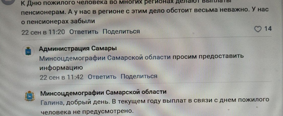 В Самарском минсоцдемографии прокомментировали вопрос о выплатах ко Дню пожилого человека