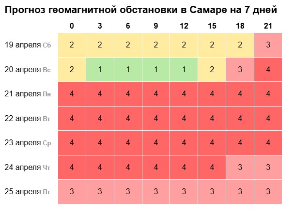 В пасхальные выходные в Самаре ожидается слабая геомагнитная буря с индексом 3 балла. В эти дни возможны перепады настроения, а метеозависимые люди могут почувствовать легкое недомогание. Рекомендуется избегать конфликтных ситуаций, высыпаться и больше времени проводить на свежем воздухе.