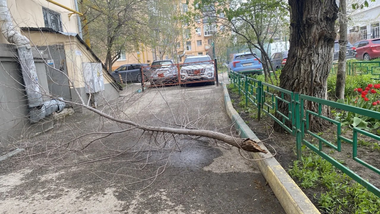 Порывы южного ветра достигают 25-27 метров в секунду, и деревья, не выдерживая такой нагрузки, начинают ломаться прямо на глазах у прохожих. Одна из неприятных ситуаций произошла на улице Мичурина — очевидцы сообщили, что крупная ветка рухнула прямо на припаркованный легковой автомобиль, повредив его крышу и лобовое стекло. К счастью, в момент падения внутри машины никого не было, но инцидент еще раз подтвердил опасность нахождения на улице в такую погоду.