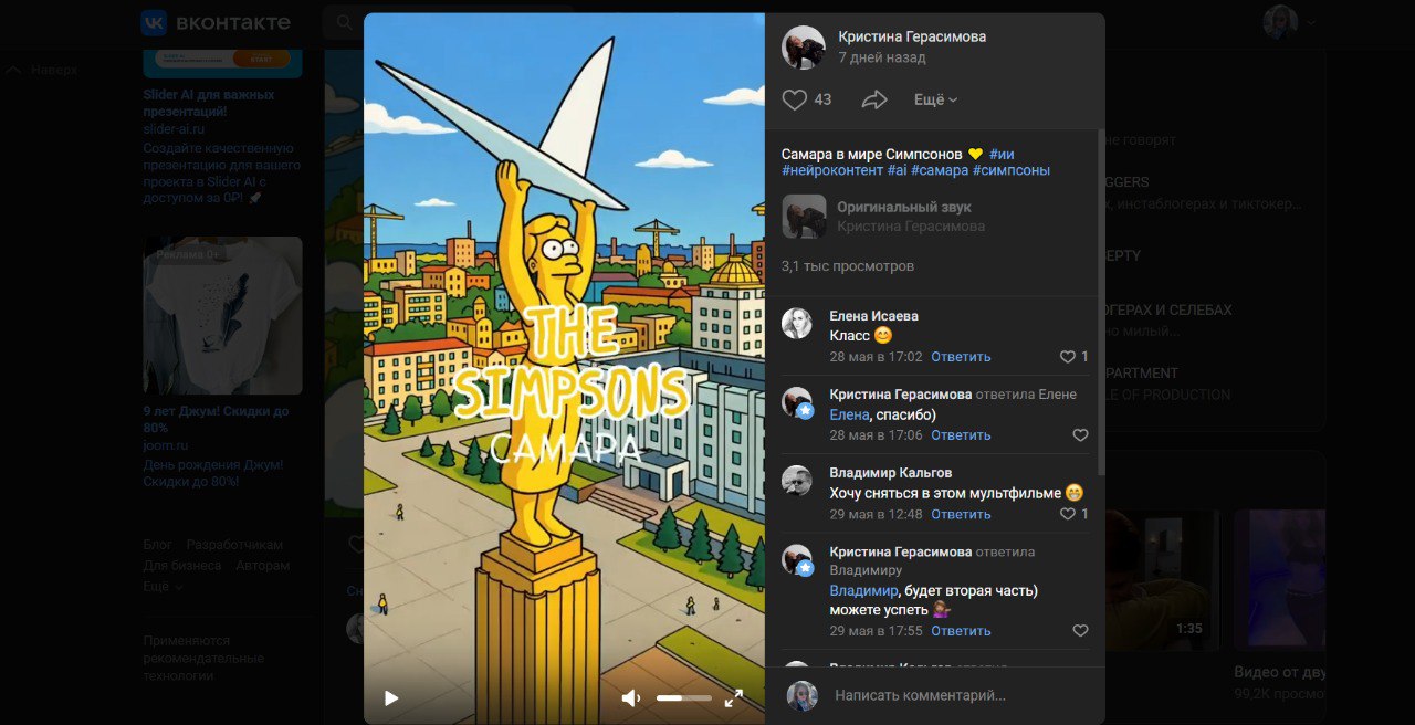 Не так давно в социальных сетях завирусился видеоролик о достопримечательностях Самарской области, созданный в стилистике популярного мультсериала «The Simpsons». Автором оказалась жительница областной столицы. Репортёр tvsamara.ru Анастасия Коротыч связалась с Кристиной Герасимовой, чтобы выяснить - ждать ли продолжения?