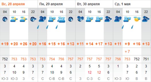 Подробный прогноз с 28 апреля по 1 мая