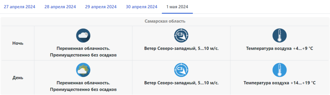 Редакция tvsamara.ru проанализирована прогнозы погоды популярных сервисов с 28 апреля по 1 мая.