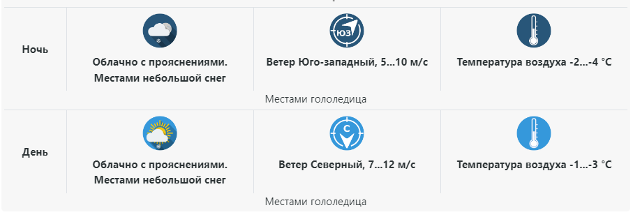 По прогнозам синоптиков, ночью температура опустится до -3°C, Облачная с прояснениями погода. Местами небольшой снег. К утру температура немного повысится и составит -2°C. Однако ближе к вечеру вновь станет холоднее — до -4°C, а ночью температура упадет еще на один градус.