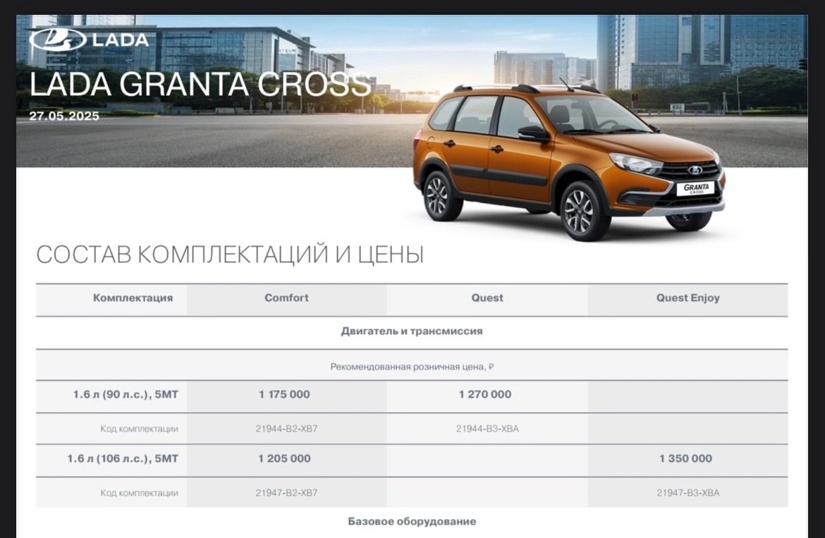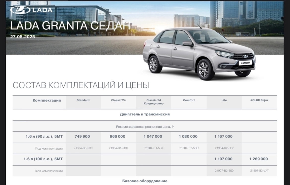 Рассказываем о ценах на самый дешевый новый автомобиль в России, Лада Гранта, на конец мая 2025.