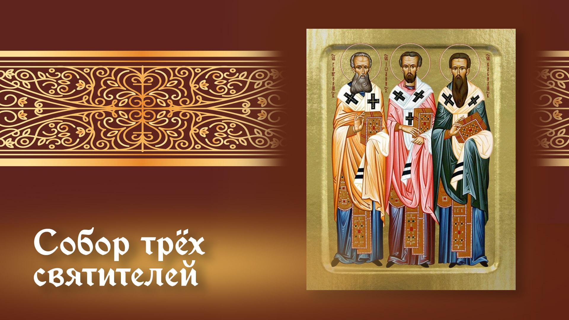 В церковном календаре этот день называется Собор трёх святителей, а в народной традиции его часто зовут Трёхсвятием или Васильевым днём — по имени одного из почитаемых святых. Их обычно изображают вместе на иконах: в полный рост, в святительских одеждах, со Священным Писанием в руках.