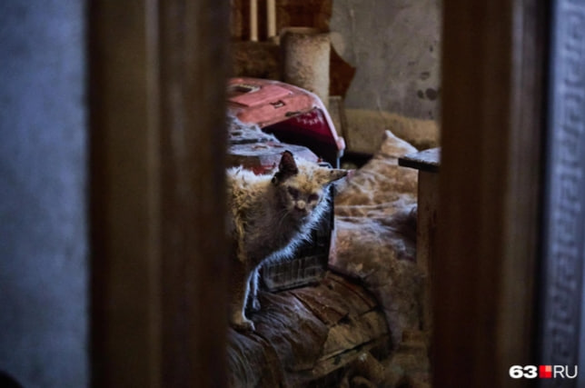Как выяснилось, там проживал пенсионер Юрий Герасимов вместе с 16 кошками, а за годы в помещении скопились горы мусора. По информации издания 63.ru, окна квартиры были плотно закрыты, а на стёклах виднелись следы испарений от кошачьих испражнений.