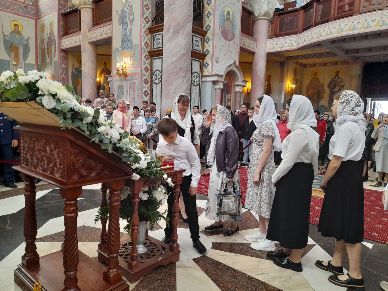 На богослужении в Софийском соборе уже собралось несколько сотен горожан, чтобы помолится Святителю Тихону о смирении, терпении, мудрости и укреплении в вере. Его жизнь и деятельность являются примером стойкости и преданности идеалам христианства.