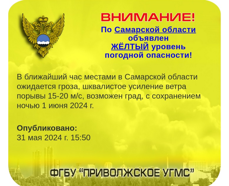 Спасатели Самарской области, ссылаясь на региональных синоптиков, в пятницу, 31 мая, разослали экстренное предупреждение. Оно касается резкого изменения погодных условий.