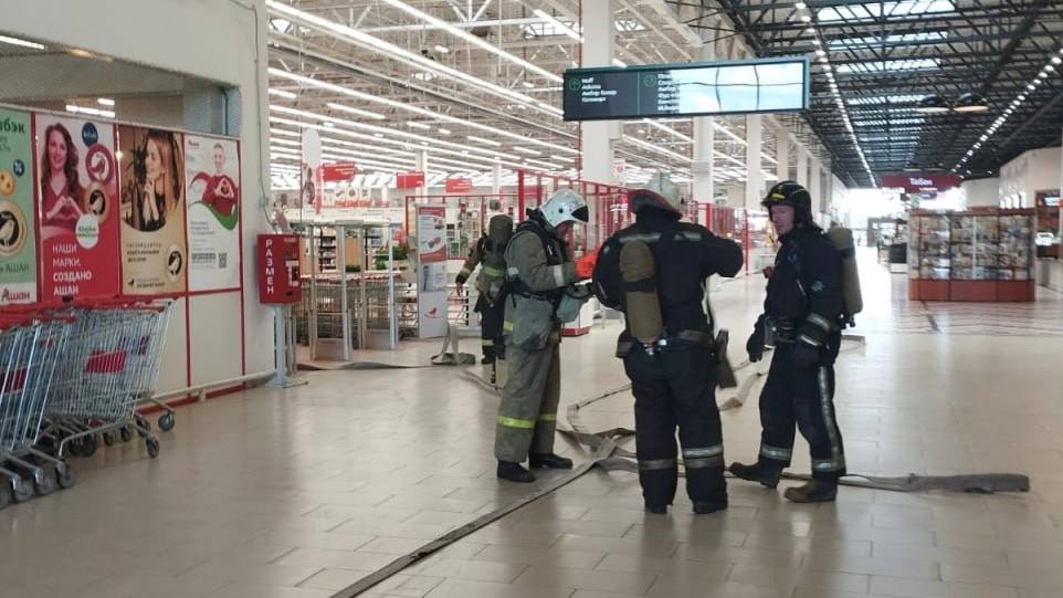 По легенде, в здании произошло условное возгорание. Пожарные совместно с персоналом ТК отрабатывали эвакуацию посетителей, спасение условных пострадавших и тушение «пожара».