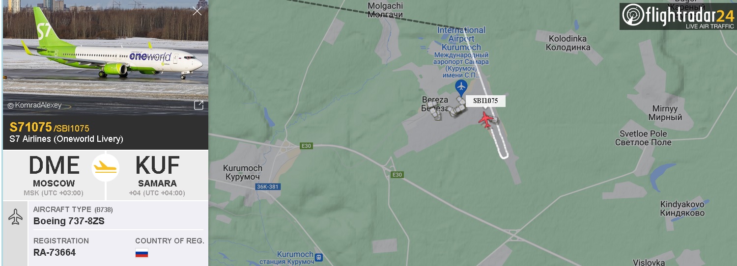 По информации портала «flightradar24», в Самару в 17:00 прилетел самолет из Москвы авиакомпании «S7».
