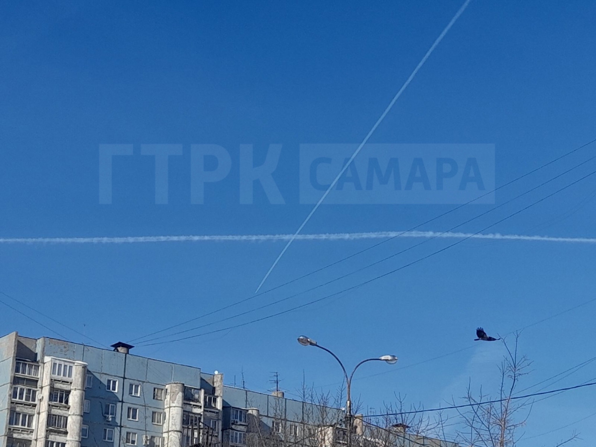 Заметив необычную активность, кадры во вторник, 27 февраля, сделал мобильный репортер tvsamara.ru и сообщил, что невозможно сосчитать, сколько следов оставили самолеты.