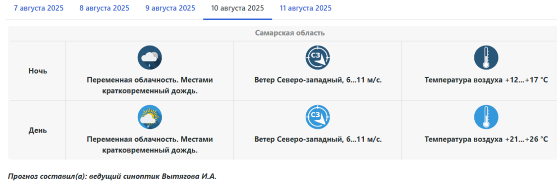 Самару в выходные 9-10 августа ждет похолодание и дожди