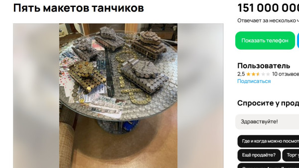 Помимо этого, это не просто неподвижные фигурки, а эти модели оснащены колесами и поворачивающимися башнями на 360 градусов. Продавец с уникальным товаром позиционирует, что дешевле "танчики" купить набором, по отдельности они стоят значительно дороже. Стоимость самодельного искусства обойдется любителям в солидную сумму - как очень хороший коттедж с престижном районе.