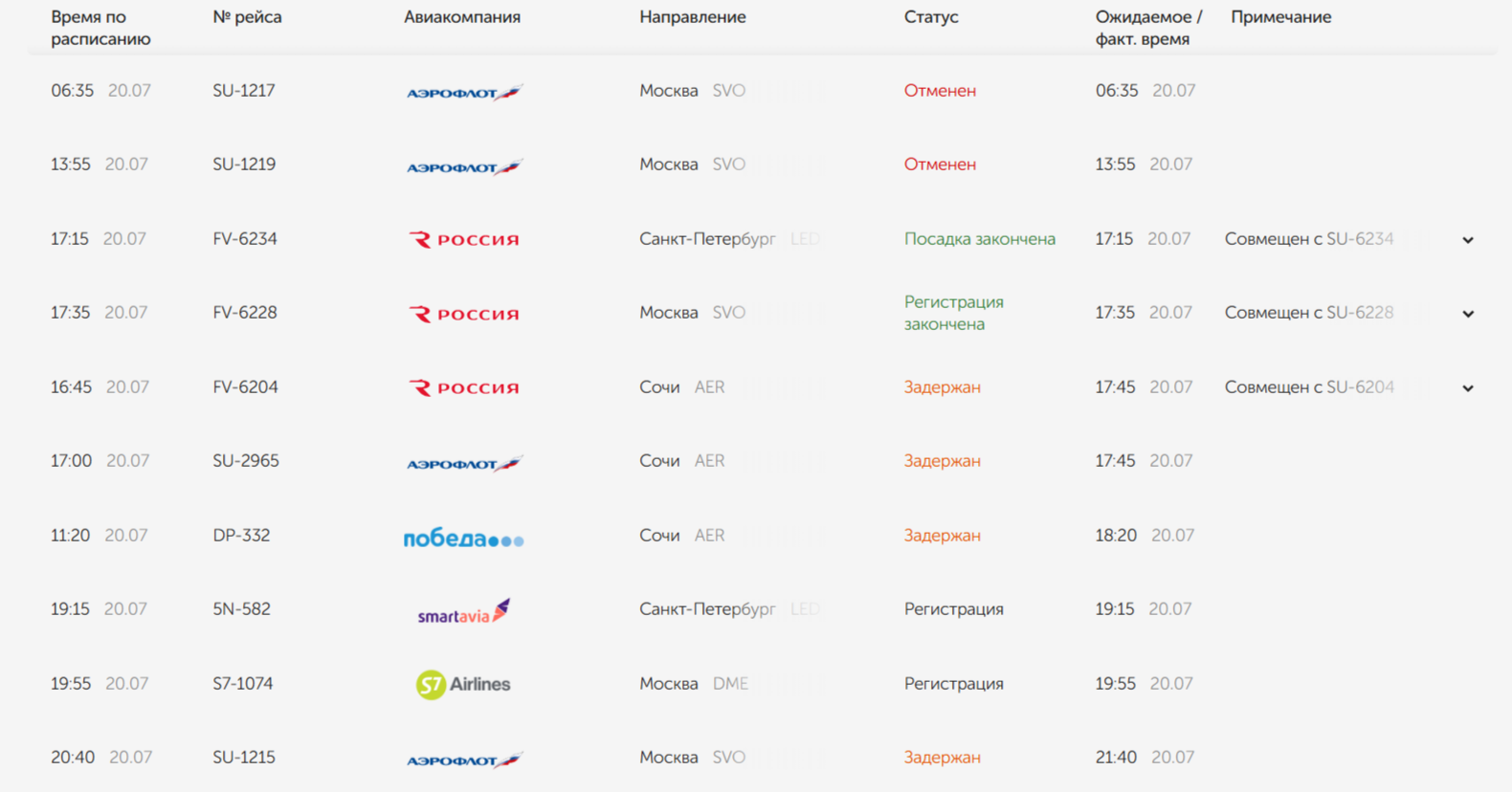 Пассажирам рекомендуется уточнять статус рейсов перед вылетом.