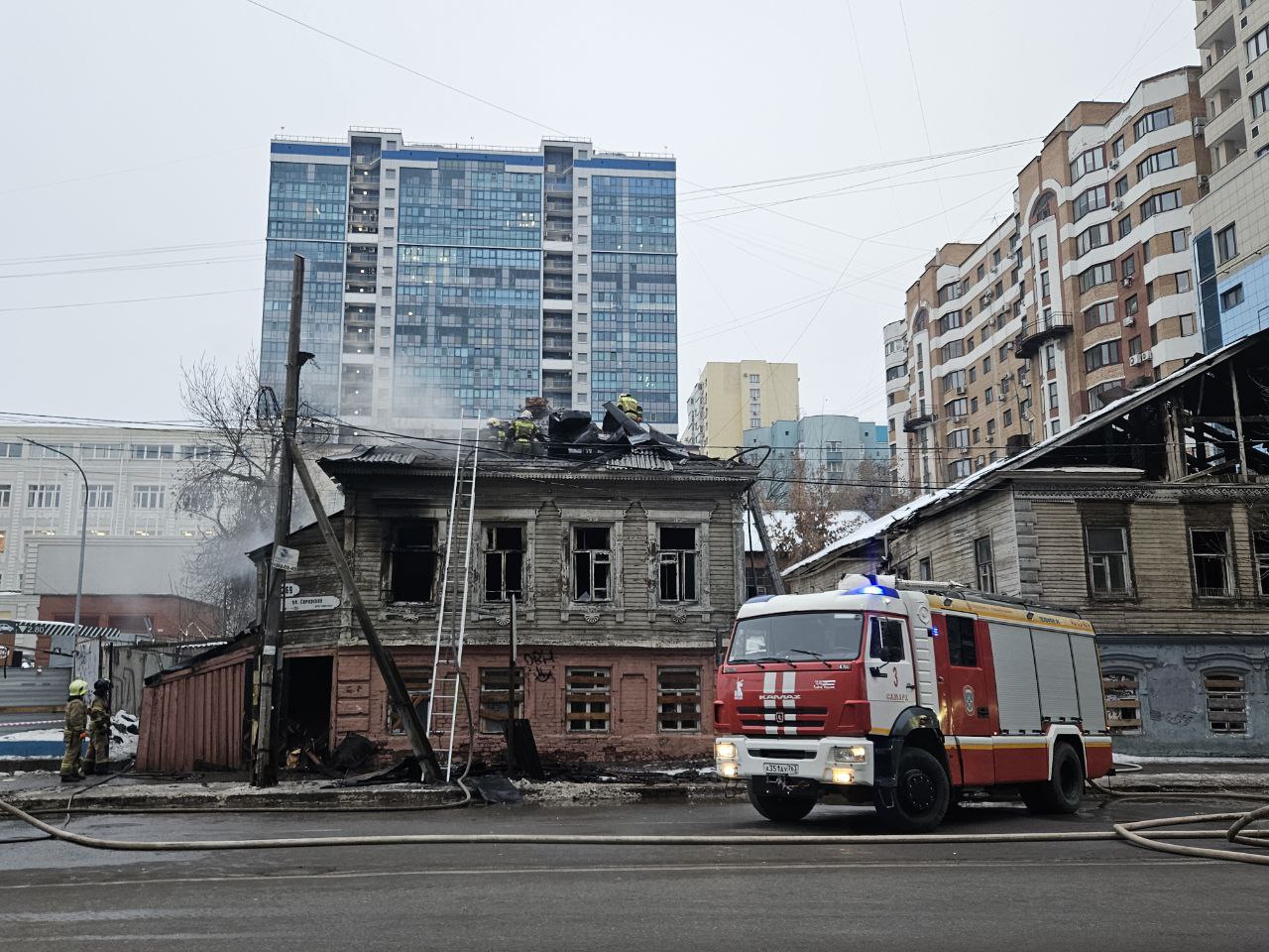 В центре Самары загорелось деревянное здание