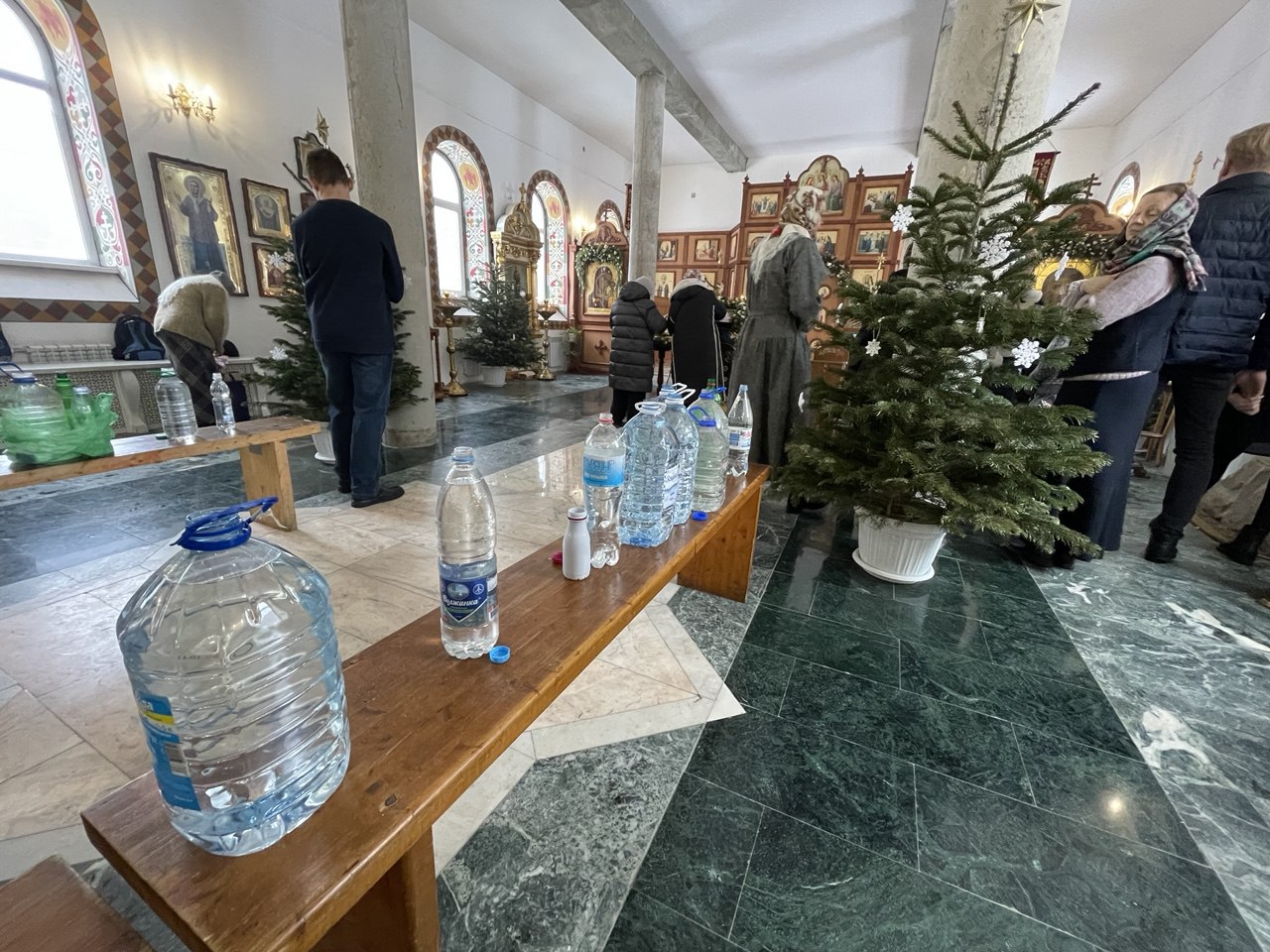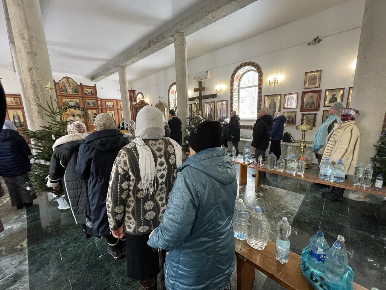 Верующие собираются в церквях, чтобы присутствовать на продолжительных и торжественных богослужениях. После Божественной литургии в храмах совершается Великое освящение воды — священники читают особые молитвы и троекратно погружают крест, освящая воду, которую верующие затем берут домой как великую святыню на весь год.