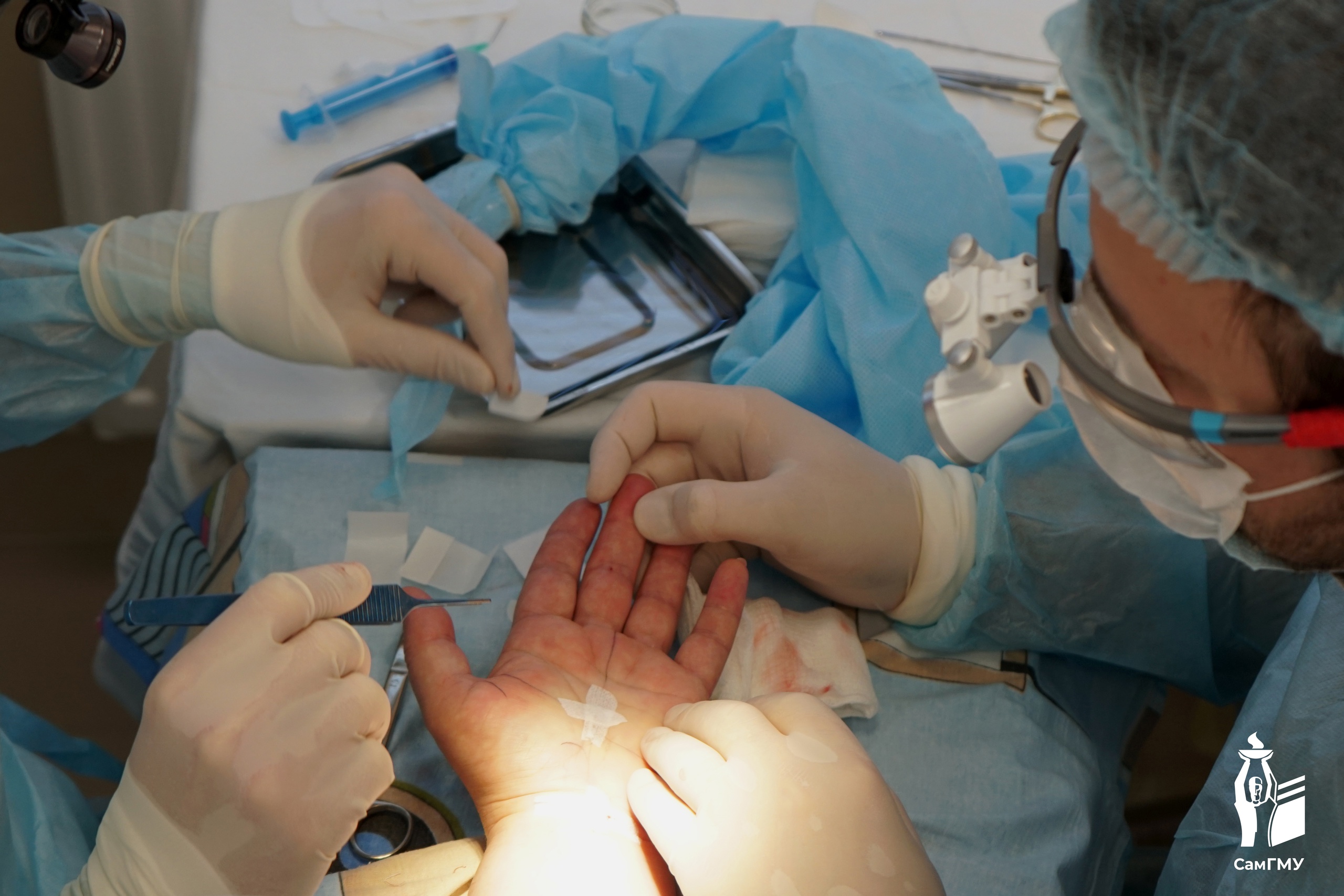 Врачи клиник СамГМУ впервые в России выполнили сразу две малоинвазивные операции на кисти руки под контролем ультразвукового исследования, используя уникальные инструменты, созданные в стенах университета.