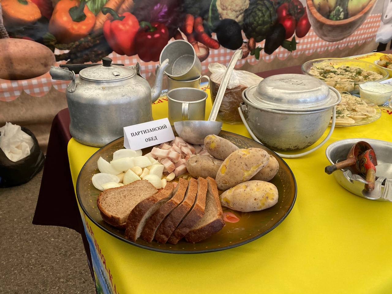 Кроме того, в этом году тема выставки-ярмарки — 80-летие Победы в Великой Отечественной войне. На площади можно встретить людей в тематической военной форме того времени. Все сделано для того, чтобы лучше передать атмосферу события. На прилавках представлено многое: различные блюда, доски с достижениями, поделки. И, по традиции, на выставке-ярмарке проводится конкурс среди поселений на лучший стенд.