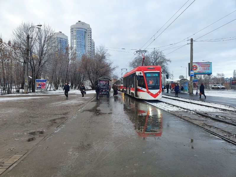 В Самара утром 18 марта встали трамваи на ул. Ново-Садовой