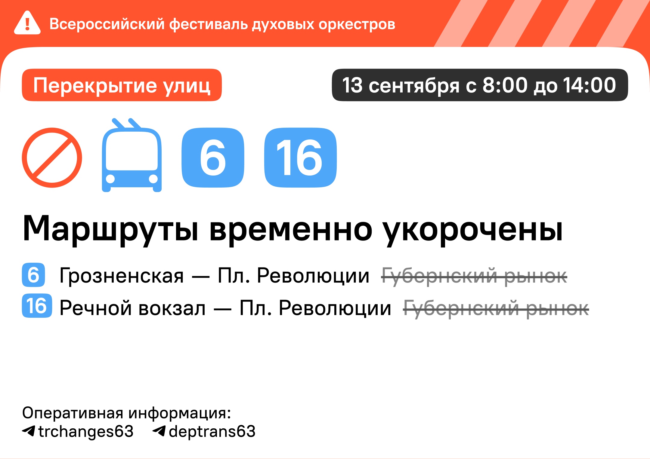 В Самаре 13 сентября ограничат движение транспорта из-за парада духовых оркестров