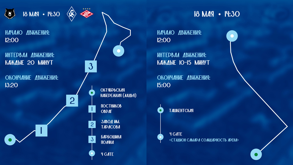 18 мая на стадионе «Солидарность Самара Арена» состоится матч между самарскими «Крыльями Советов» и московским «Спартаком». Для удобства болельщиков организаторы подготовили бесплатные шаттлы, которые будут курсировать до стадиона.