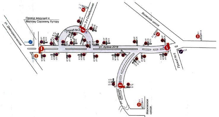 - по улице Арена 2018 от Проезда № 8 до поворота на проезд, ведущий к улице Малый Сорокин Хутор;