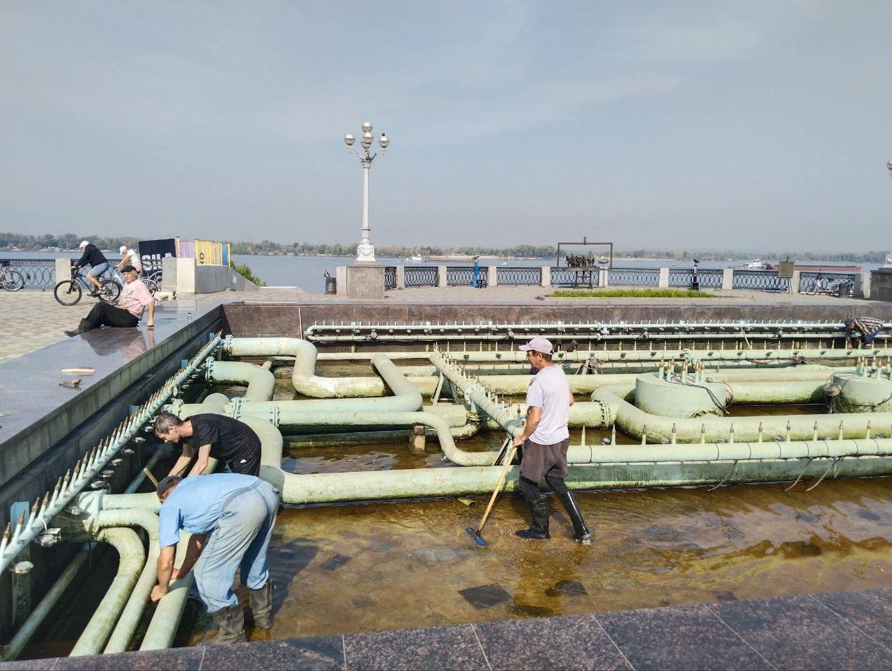 После зимовки на гидротехнических сооружениях Самары проводят профилактику: проверяют подводящие трубы, насосы, форсунки. Любой фонтан, даже небольшой, как музыкальный инструмент – требует настройки. Именно этим сейчас занимаются коммунальные службы.