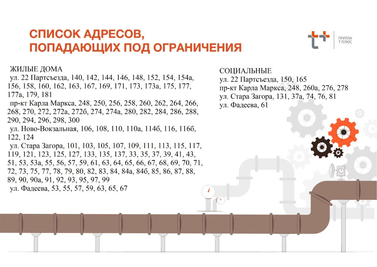 Список адресов, попадающих под отключение: