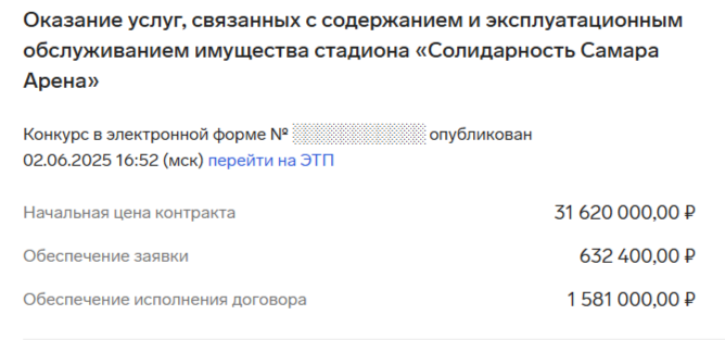 Подрядчику предстоит заниматься содержанием стадиона в период с 1 июля 2025 года по 31 января 2026 года. В перечень работ входят обслуживание систем пропуска, вентиляции и кондиционирования, канализации, звукоусиления и отображения видеоинформации.