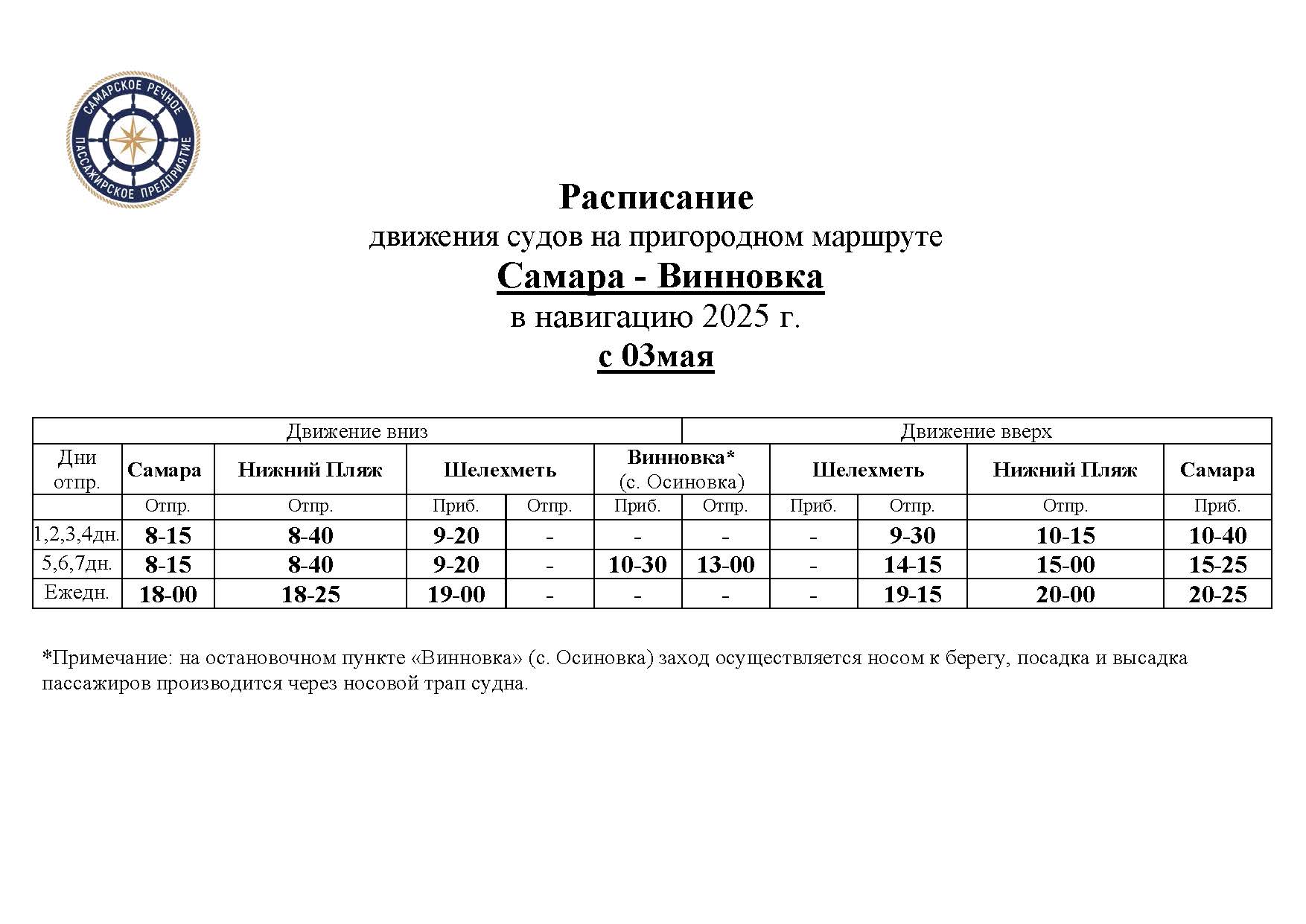 С 3 мая в областной столице изменится расписание движения судов по пригородному маршруту «Самара – Рождествено».