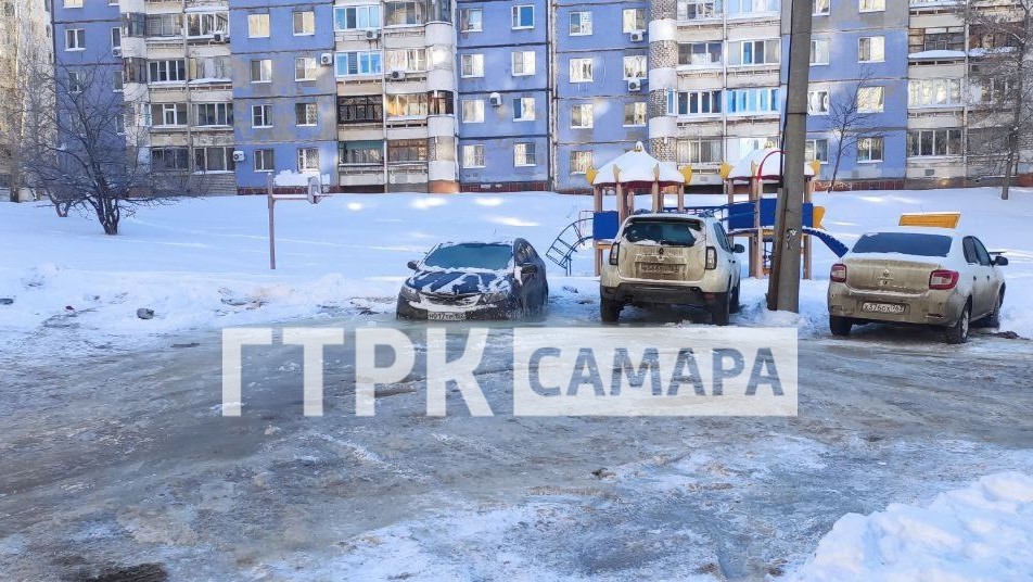 В Самаре машины вмерзли в лед из-за коммунальной аварии на Шверника