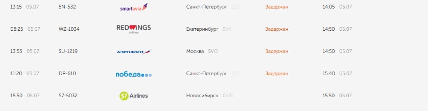 Скриншот: Он-лайн табло аэропорта "Курумоч"