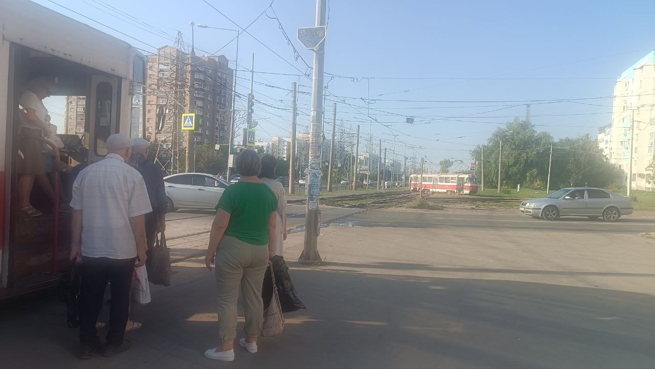 В Самаре, на оживленной улице Ново-Садовой, в районе остановки общественного транспорта "Солнечная" сломался трамвай.