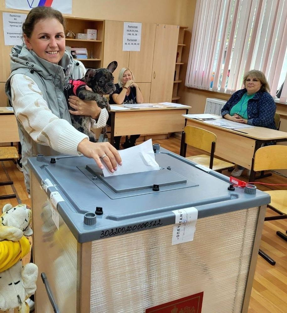 Другие, более привычные в городской среде домашние животные, тоже пришли на участки. Небольшие собаки разных пород позировали для камеры в руках хозяев.
