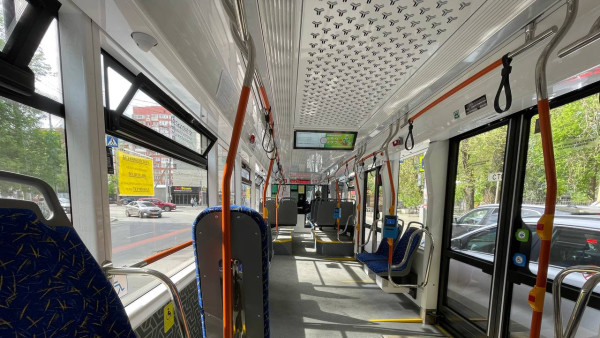 Это один из шести новых вагонов. К майским торжествам трамвайный парк города пополнился шестью новыми составами. Все вагоны успешно прошли необходимые этапы подготовки, включая проверку, настройку и тестовый прогон, и в настоящее время эксплуатируются на маршрутах города.