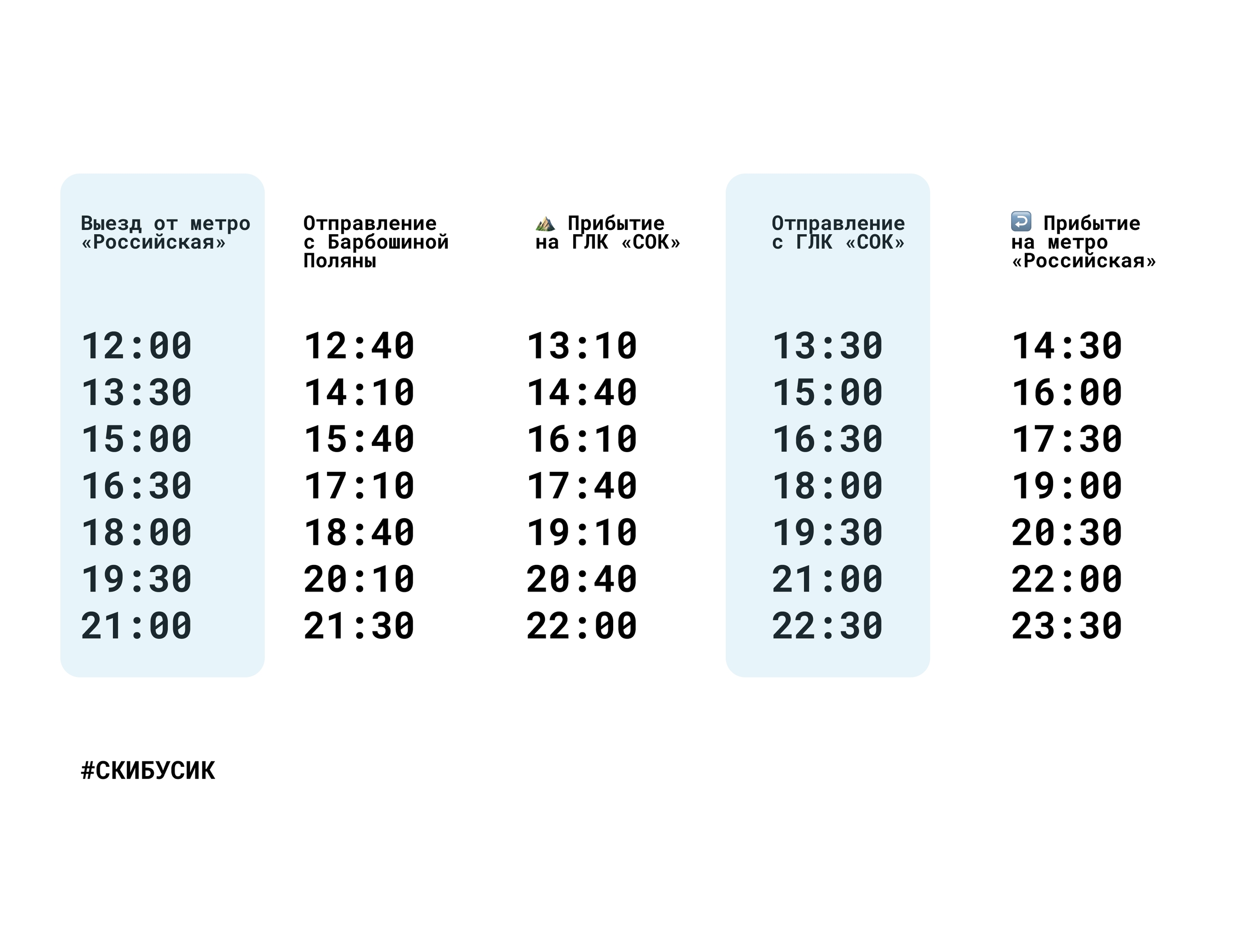 Маршрут шаттла пролегает от станции метро «Российская» до самого комплекса с остановкой на Барбошиной Поляне, при этом место посадки было изменено, поэтому перед поездкой рекомендуется внимательно ознакомиться с актуальной схемой движения.