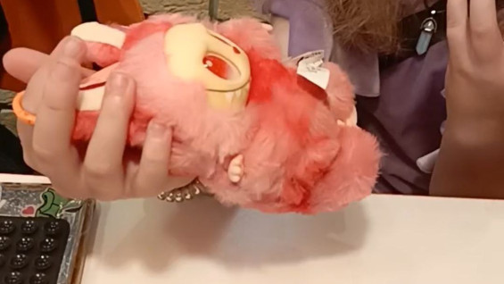 Высота игрушки 26 см, и ее облик весьма своеобразен: на лбу выгравированы три "шестерки", а лицо искажено пугающей ухмылкой с черными зрачками. Маловероятно, что ребенок будет в восторге от такой забавы. Самарец оценил это творение в 669 рублей.