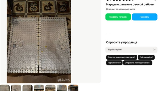 Для любителей настольных игр недавно появилось на торговой площадке объявление о продаже нард за 64 миллиона рублей – в набор входит игральное поле и фишки из монет двух видов.