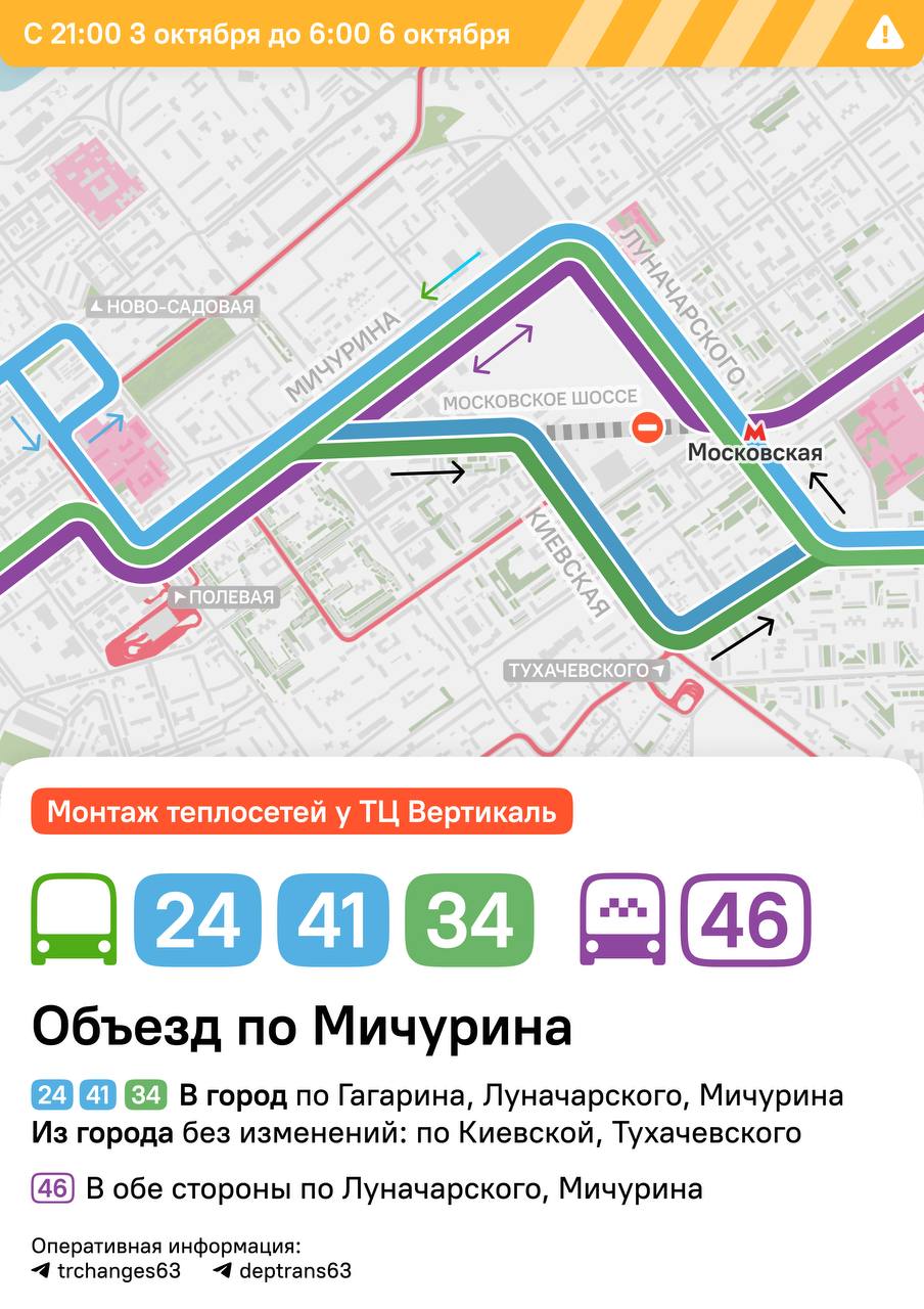 В центре Самары с 3 по 6 октября общественный транспорт пустят в объезд
