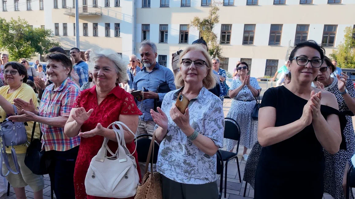 Когда духовые инструменты заиграли на фоне старинных зданий в центре Самары, публика оживилась. Многие с удовольствием подхватывали мотив, кто-то даже пустился в пляс.