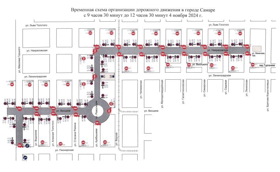 «В целях обеспечения безопасности дорожного движения в связи с проведением 4 ноября 2024 года Крестного хода, посвященного Дню народного единства на территории г. о. Самара будет временно ограничено движение транспорта по нескольким участкам улично-дорожной сети в историческом центре города», — сообщили в ведомстве.
