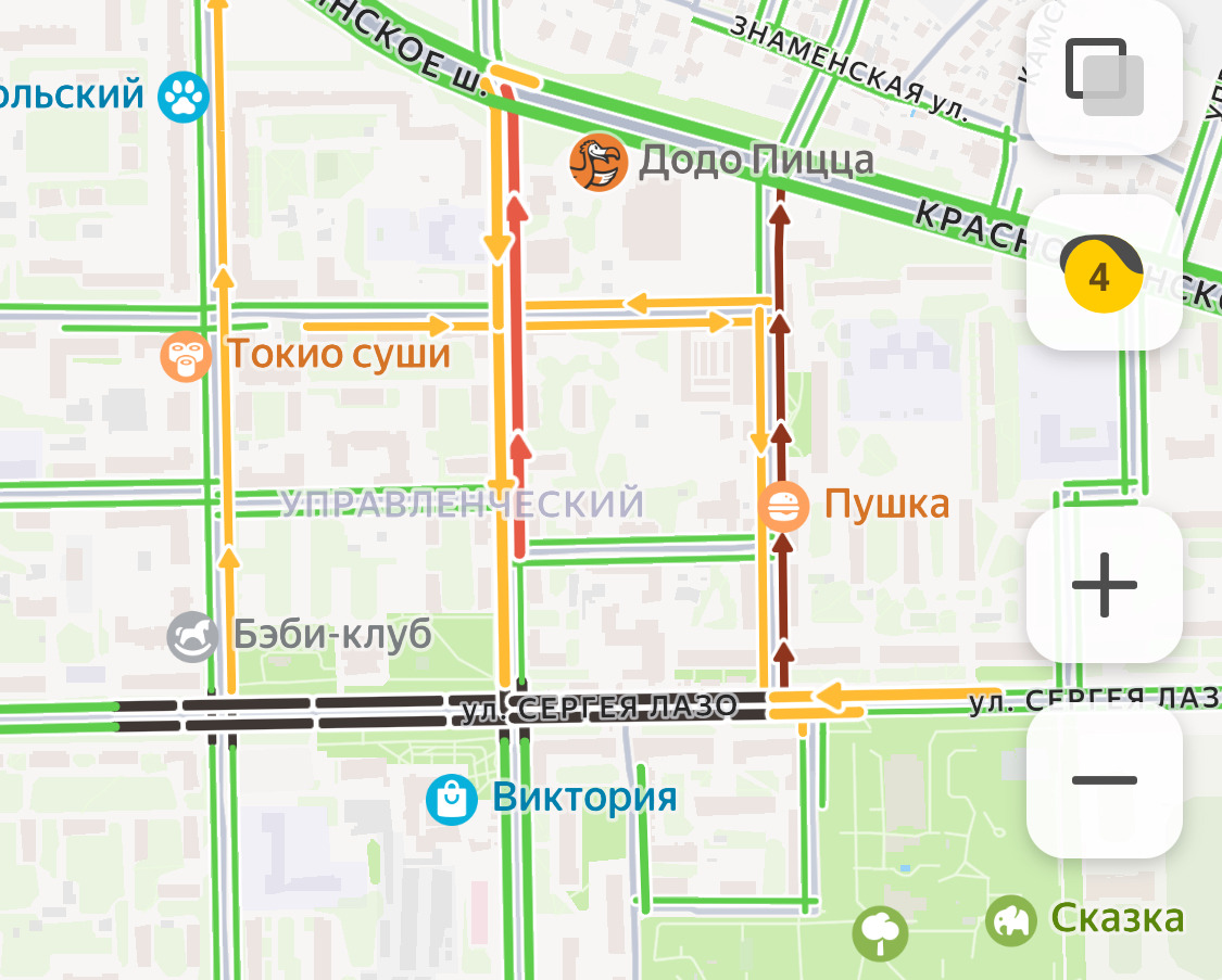 Согласно популярному сервису «Яндекс Пробки», движение на участке действительно перекрыто и выделено черным цветом.