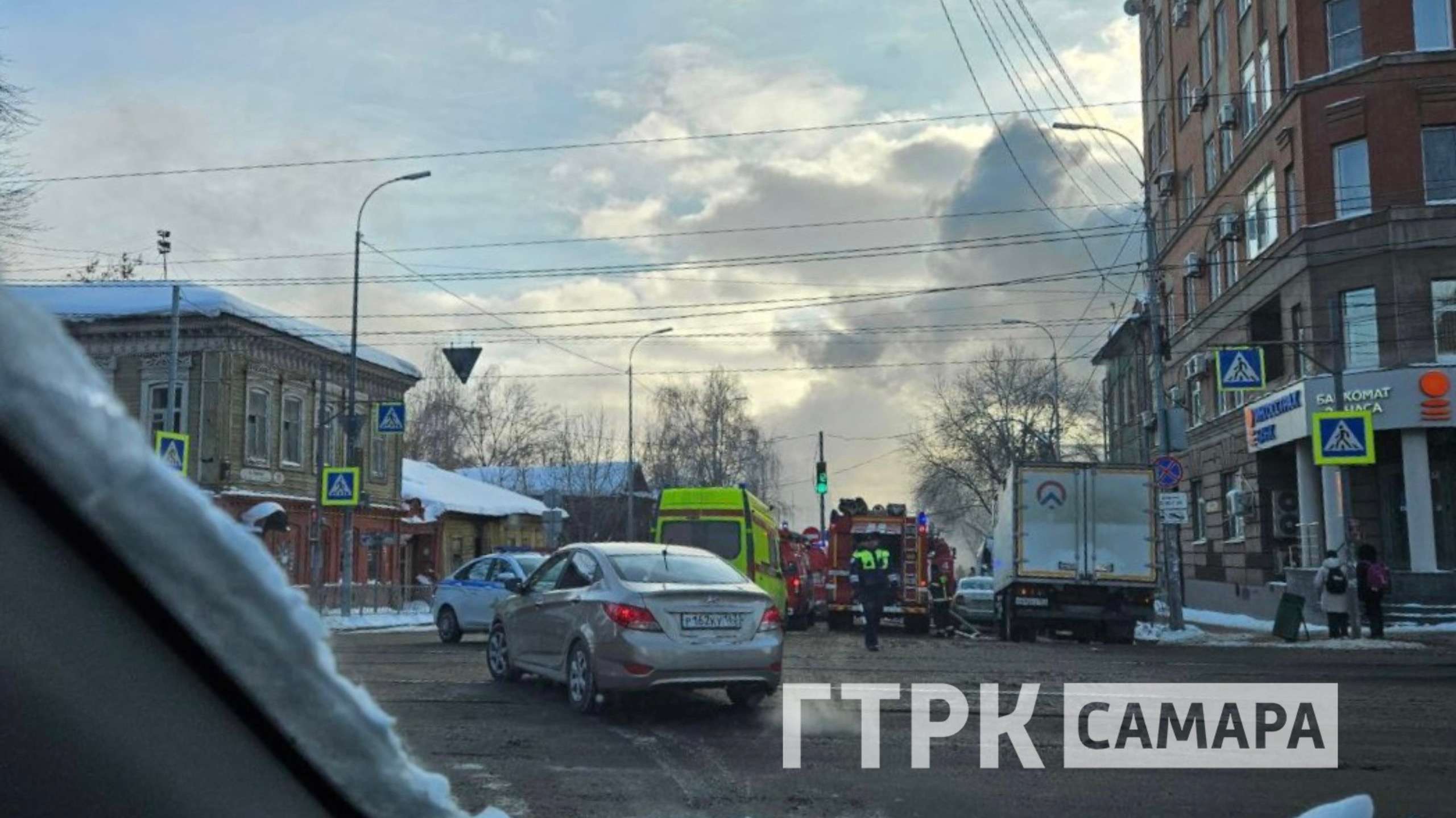 Днем 10 февраля вспыхнул пожар в центре Самары. Густой дым поднимался над частным сектором на пересечении улиц Ленинской и Красноармейской.