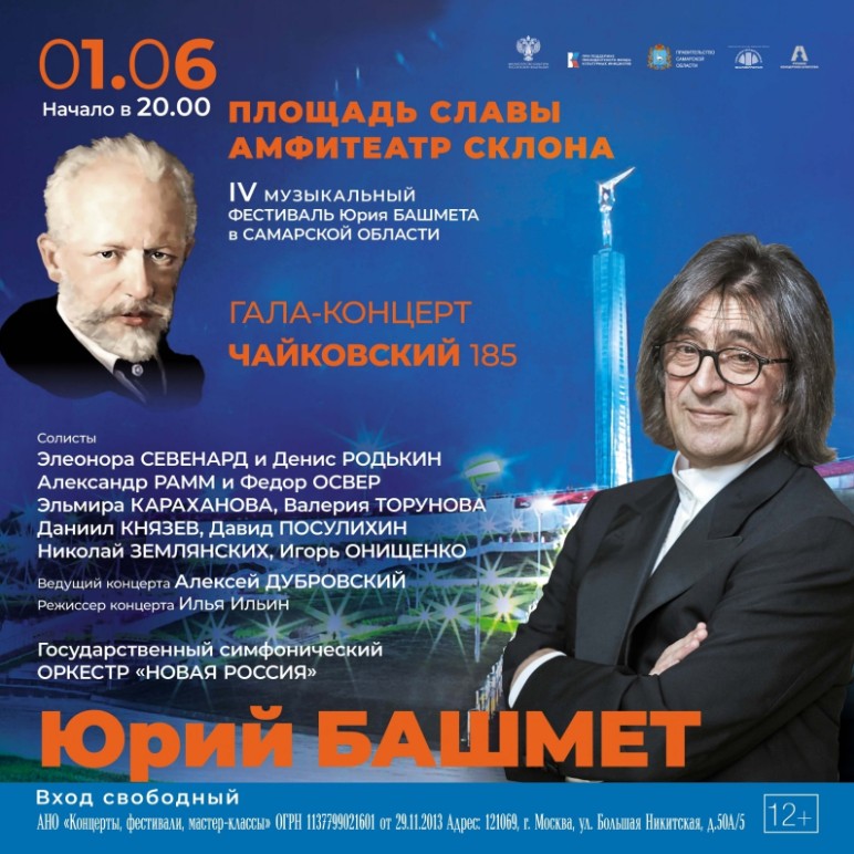 1 июня Самара вновь станет площадкой для одного из главных музыкальных событий лета — IV Музыкального фестиваля Юрия Башмета. Концерт на открытом воздухе пройдет на амфитеатре Площади Славы и будет посвящен 185-летию со дня рождения Петра Ильича Чайковского.