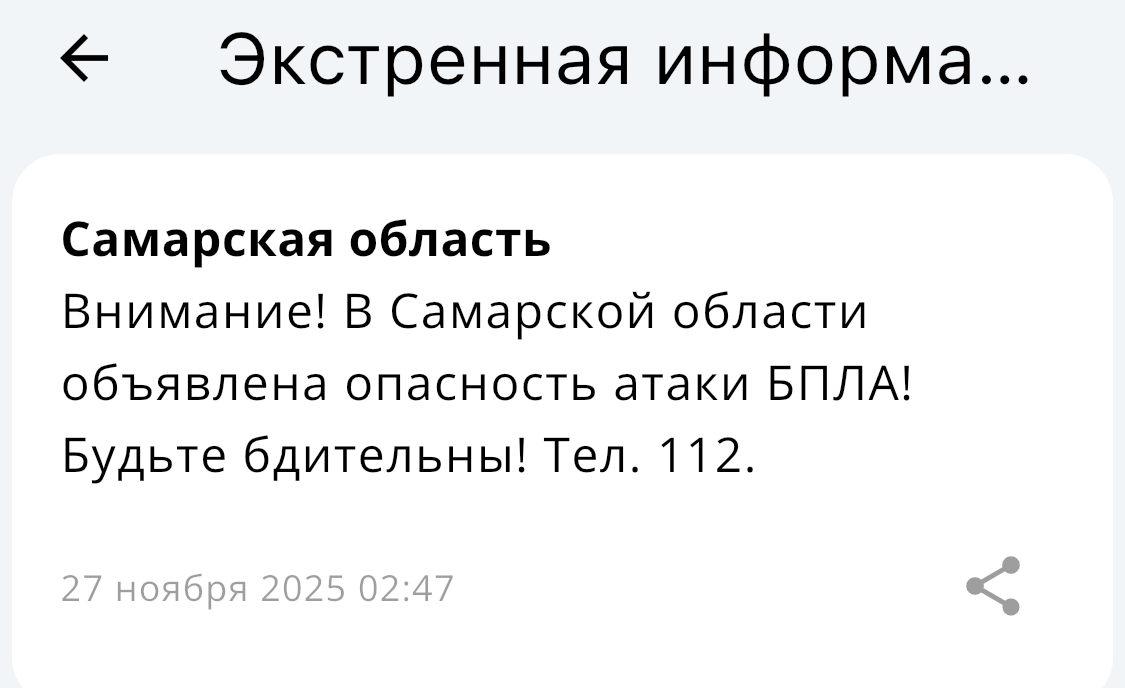 ОБНОВЛЕНИЕ (09:35) В самарской области объявили отбой опасности атаки БПЛА!