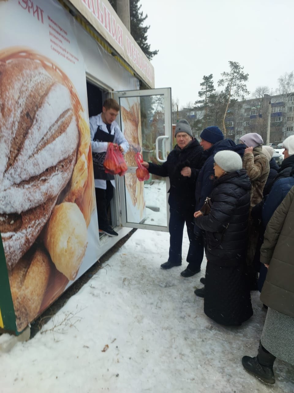 На территорию все больше приходит желающих получить поддержку. Их привлекает аромат свежего качественного хлебушка без примесей и добавок. Сегодня каждый, кому нужна помощь, может получить его. Судя по фото, социальная акция привлекла много сызранцев. Выдают свежий хлеб по одной единице в руки.