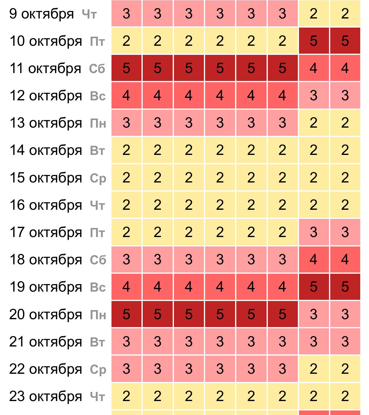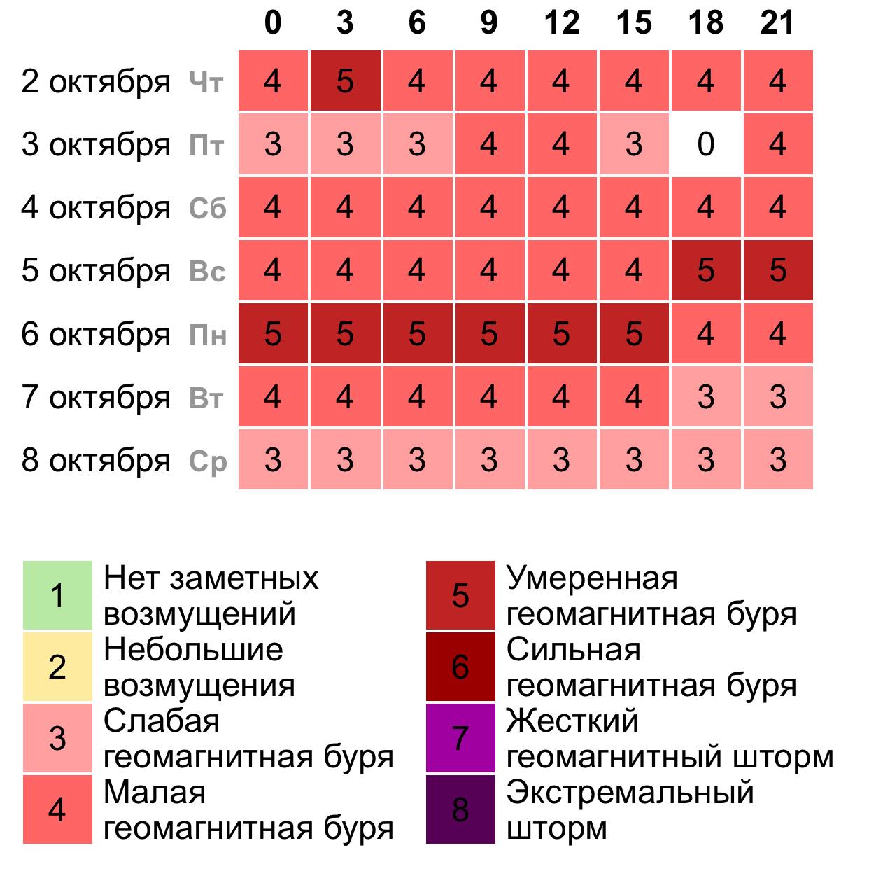 Согласно сервису my-calend, жителей региона ждет серия магнитных возмущений. Так, в ближайшие четыре дня, со 2-го по 5-6 октября, индекс возмущения будет постепенно расти, а 5 октября регион накроет умеренная магнитная буря, которая продлится почти сутки. Затем последует постепенное снижение геомагнитного возмущения.