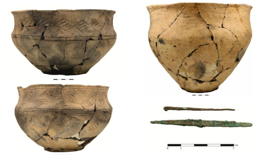 Первое захоронение принадлежит статусному представителю срубной культурно-исторической общности (это поздний бронзовый век). Здесь обнаружили останки, бронзовые ножи, каменное орудие, бронзовые подвески и браслет, костяные шилья, глиняные сосуды.