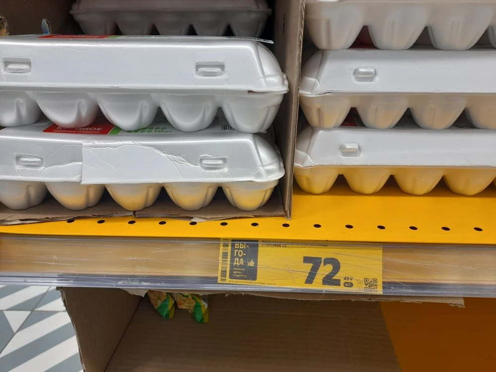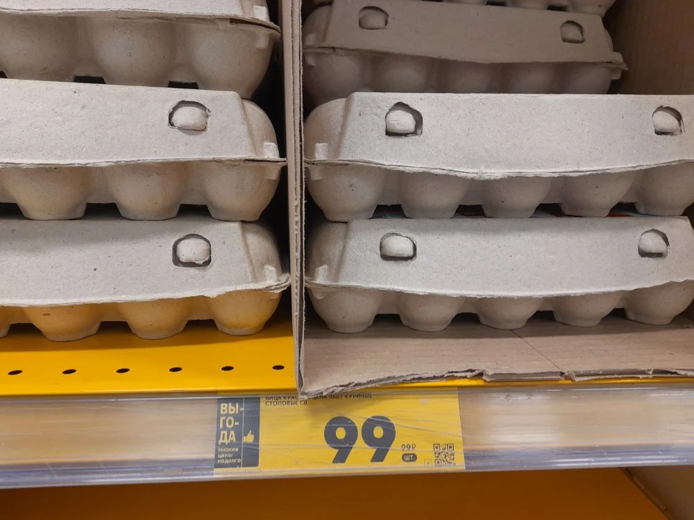 Мобильный корреспондент tvsamara.ru заглянул в один из магазинов популярной сети. Яйца второй категории (С2) там продаются по 72 рубля за десяток, за первую просят 84 рубля, но их уже успели разобрать, отборные яйца (С0) выставлены по 99 рублей за десяток.