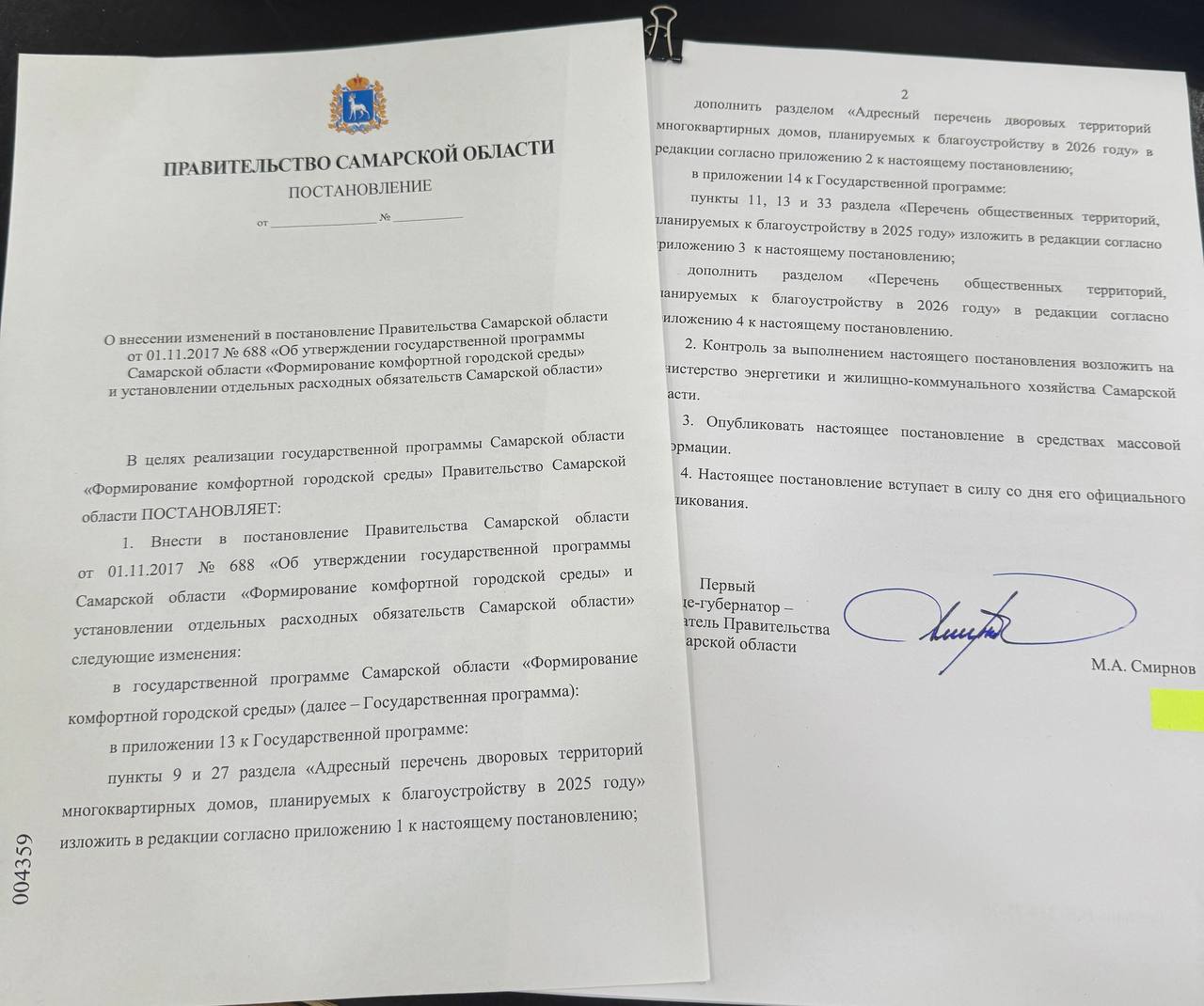 Первый вице-губернатор - председатель правительства Самарской области Михаил Смирнов подписал обновленную версию региональной программы "Формирование комфортной городской среды".